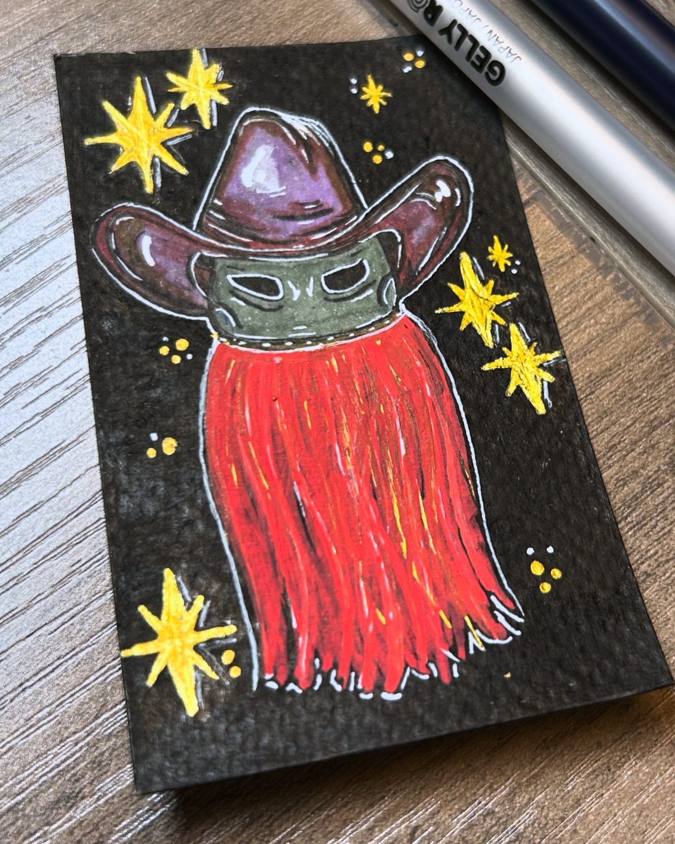 Acrylic and pen on wood